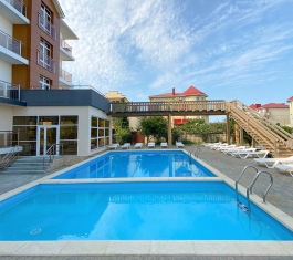 - собственный песчаный, оборудованный детской площадкой, кабинками для переодевания, лежаками, медицинским постом, навесами, площадкой для пляжного волейбола, спасательным постом, туалетом, шезлонгами