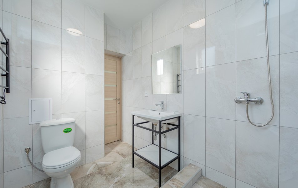 Сан.узел: душ, раковина, унитаз, туалетные принадлежности, фен