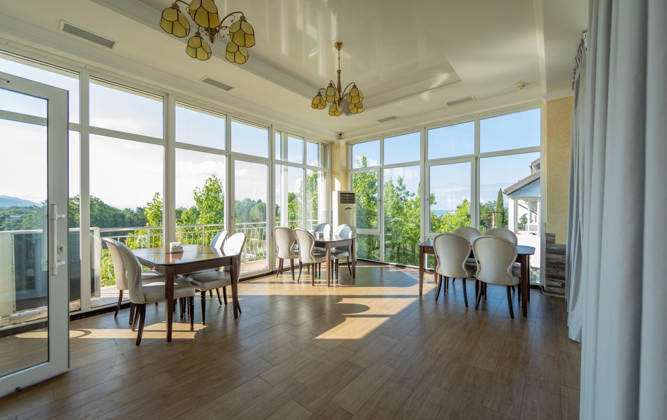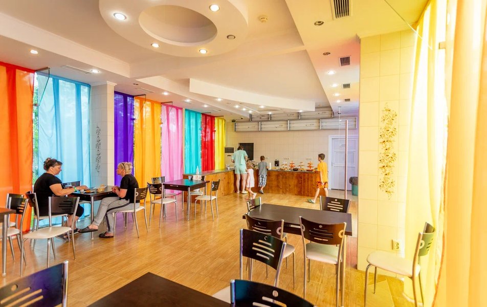 Отель «Ардис» в поселке Макопсе (Лазаревский район Сочи) предлагает гостям полноценное питание по системе «шведский стол» в рамках концепции «Всё включено». В просторном ресторане с панорамными окнами и видом на парковую зону сервируются блюда классической европейской и кавказской кухни из свежих сезонных продуктов.