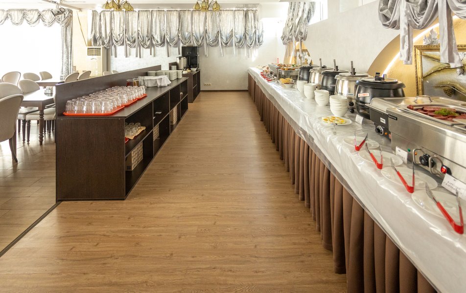 - Комфортный формат без ожидания заказа — подходите к столу в любое время режимных часов