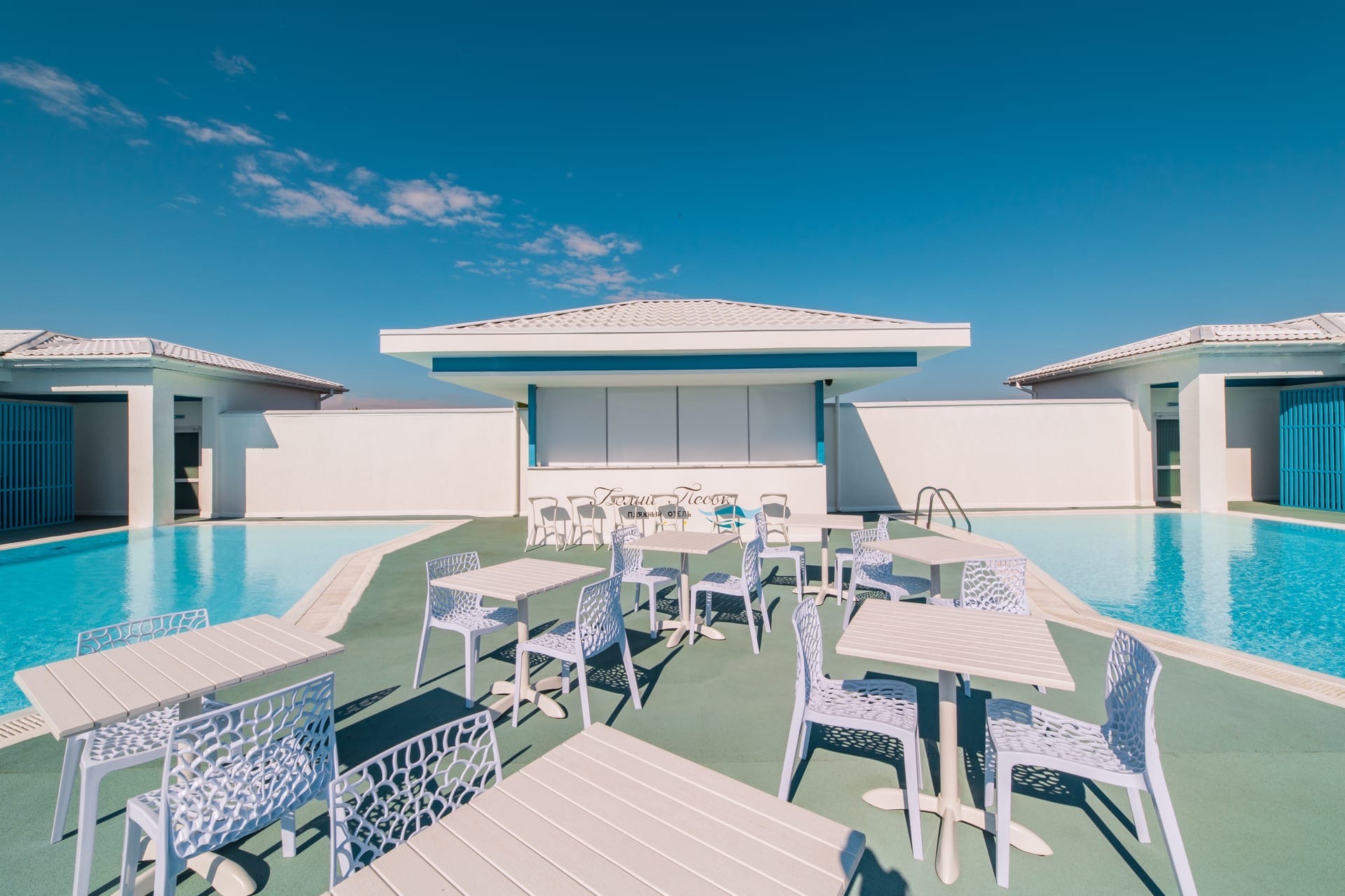 - два открытых бассейна (с пресной водой) в зоне отдыха на третьем этаже Отеля, оборудованные шезлонгами и зонтами от солнца