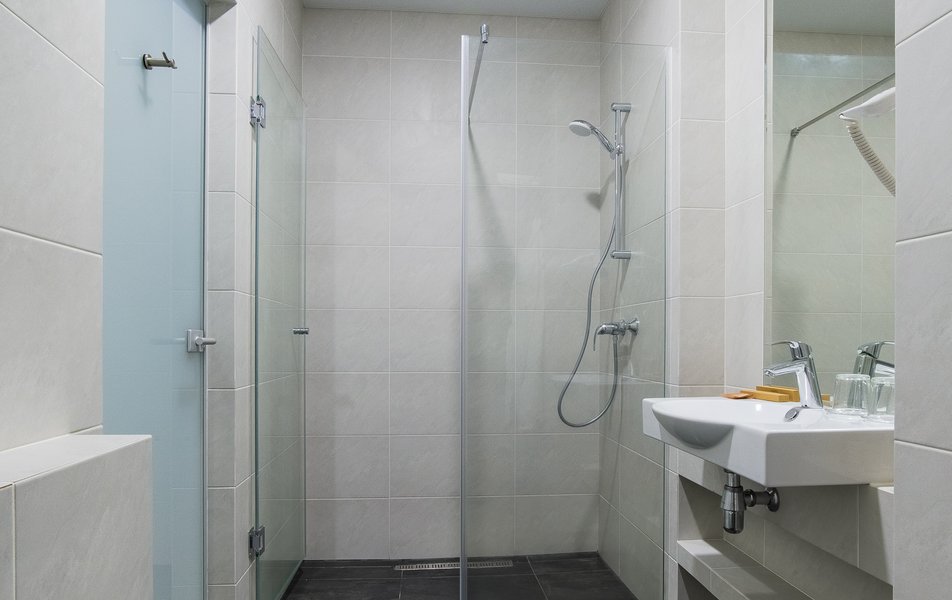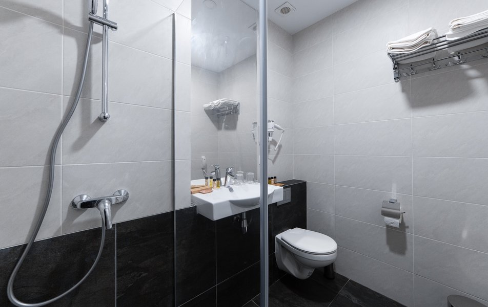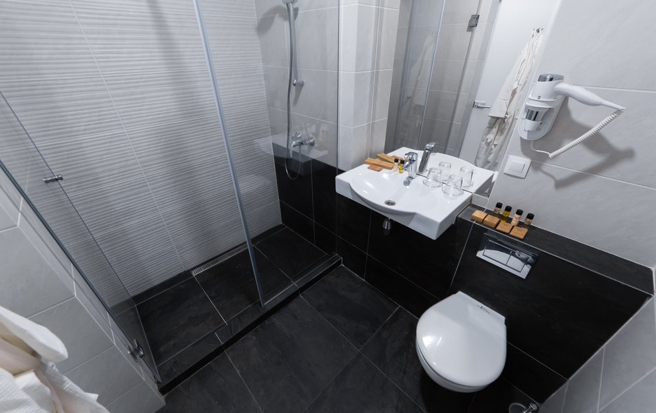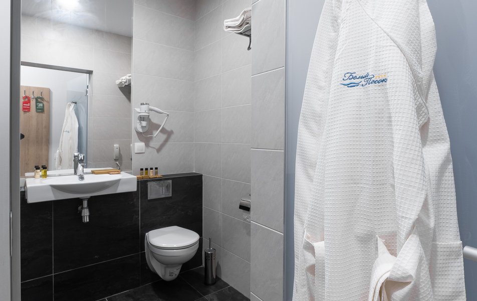 Санузел: с душем, туалетные принадлежности, фен, халат