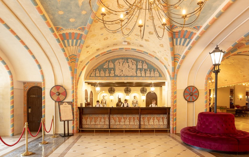 Расположенный в самом сердце курортной столицы России, четырёхзвёздочный отель-замок «Богатырь» предлагает уникальный формат отдыха — сочетание атмосферы средневековой сказки с современным комфортом. Этот архитектурный шедевр в стиле старинного замка входит в состав тематического парка «Сочи Парк», входящего в число 20 лучших парков развлечений Европы. Отель не просто соседствует с парком — он становится частью его волшебного мира, притягивая гостей своей оригинальной внешностью и атмосферой приключений.