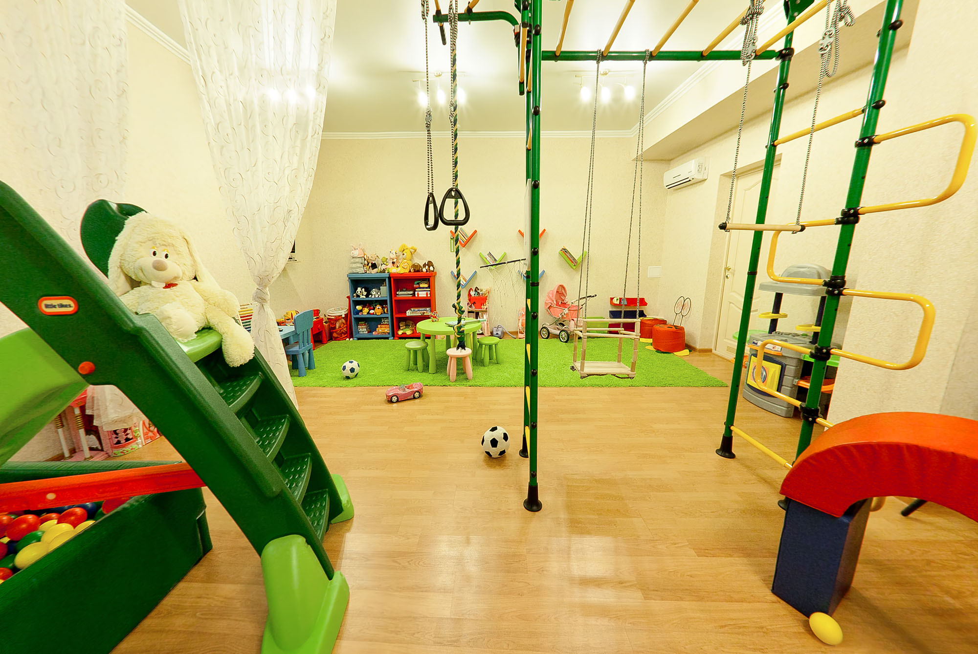 Игровая комната с воспитателем, площадка с качелями, двухэтажный мягкий лабиринт. Бесплатно: кроватки, ванночки, горшки, стульчики. Дети до 5 лет - бесплатно.