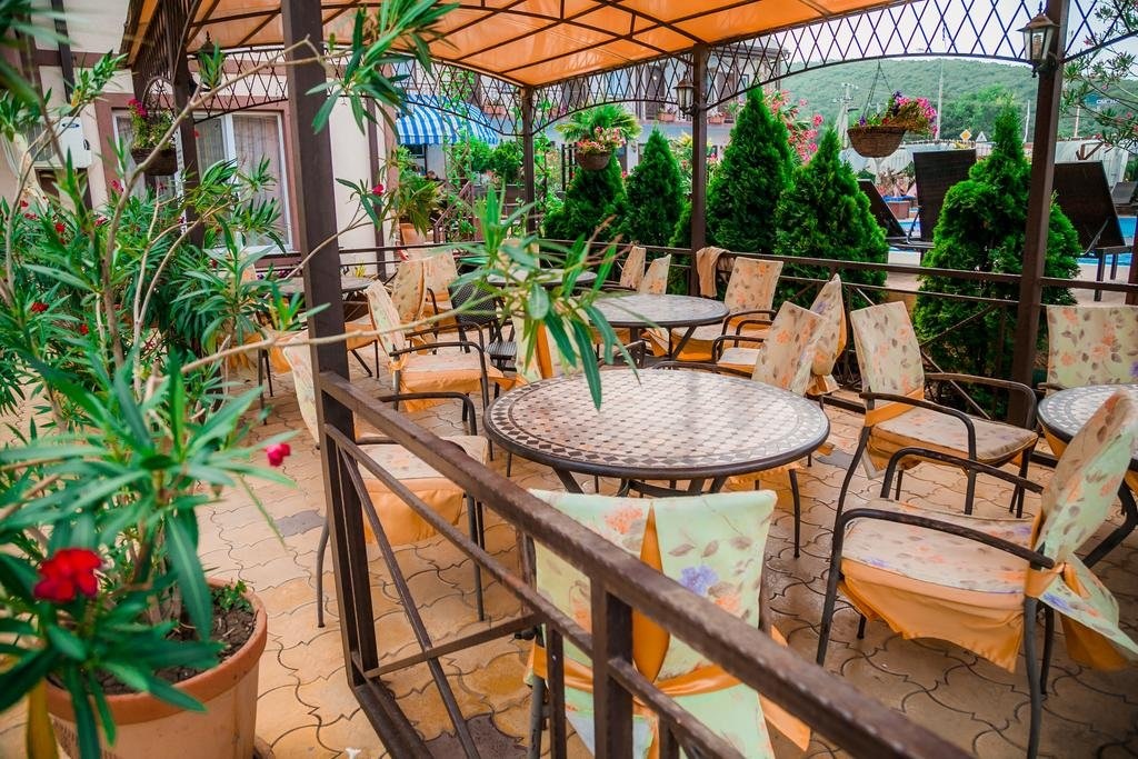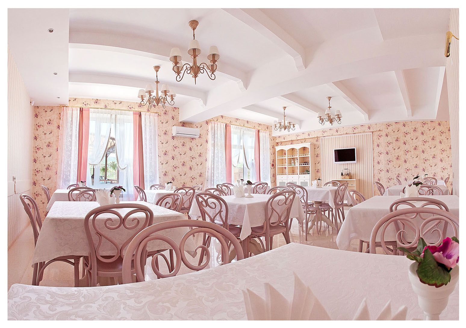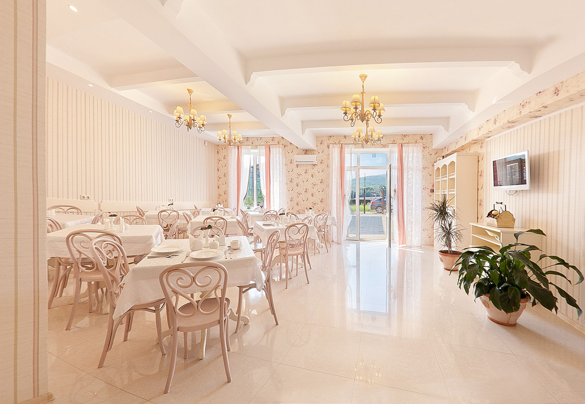 Завтрак подаётся в уютной столовой отеля или на свежем воздухе — в просторной беседке. Гостям ежедневно предлагается разнообразие блюд на выбор. Молочные каши сервируются в зоне самообслуживания без ограничений — как для детей, так и для взрослых.