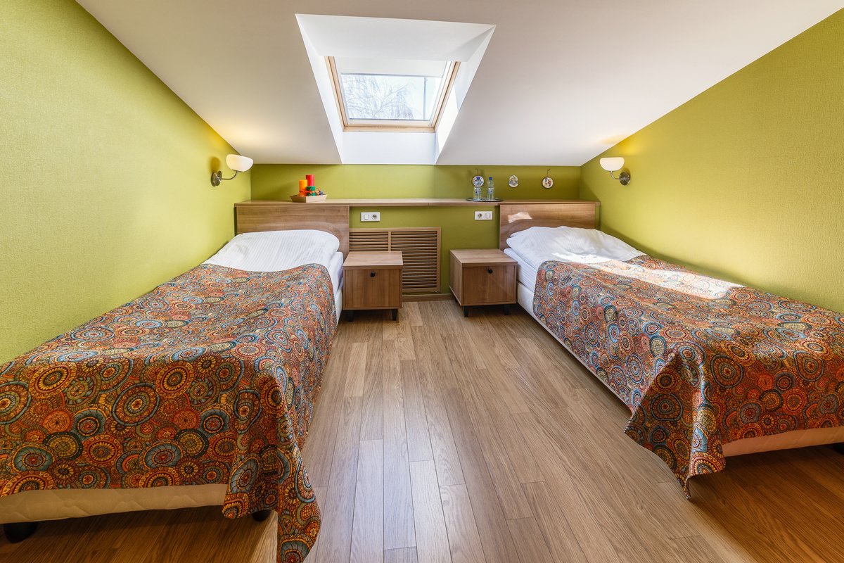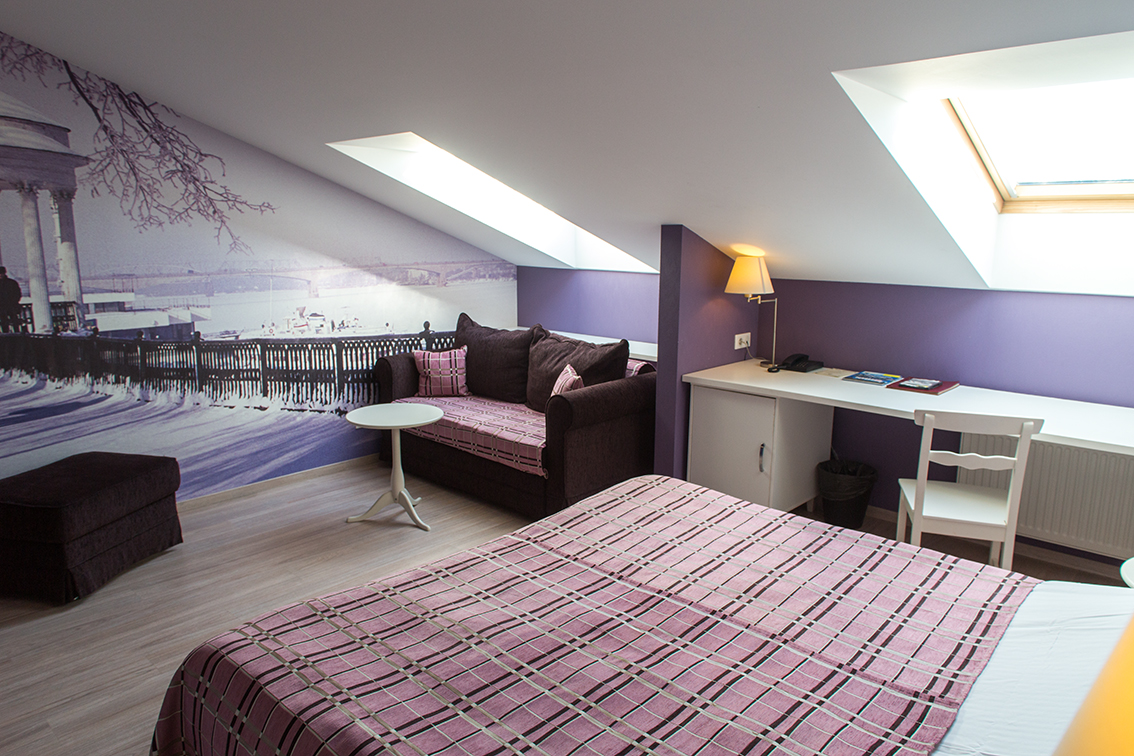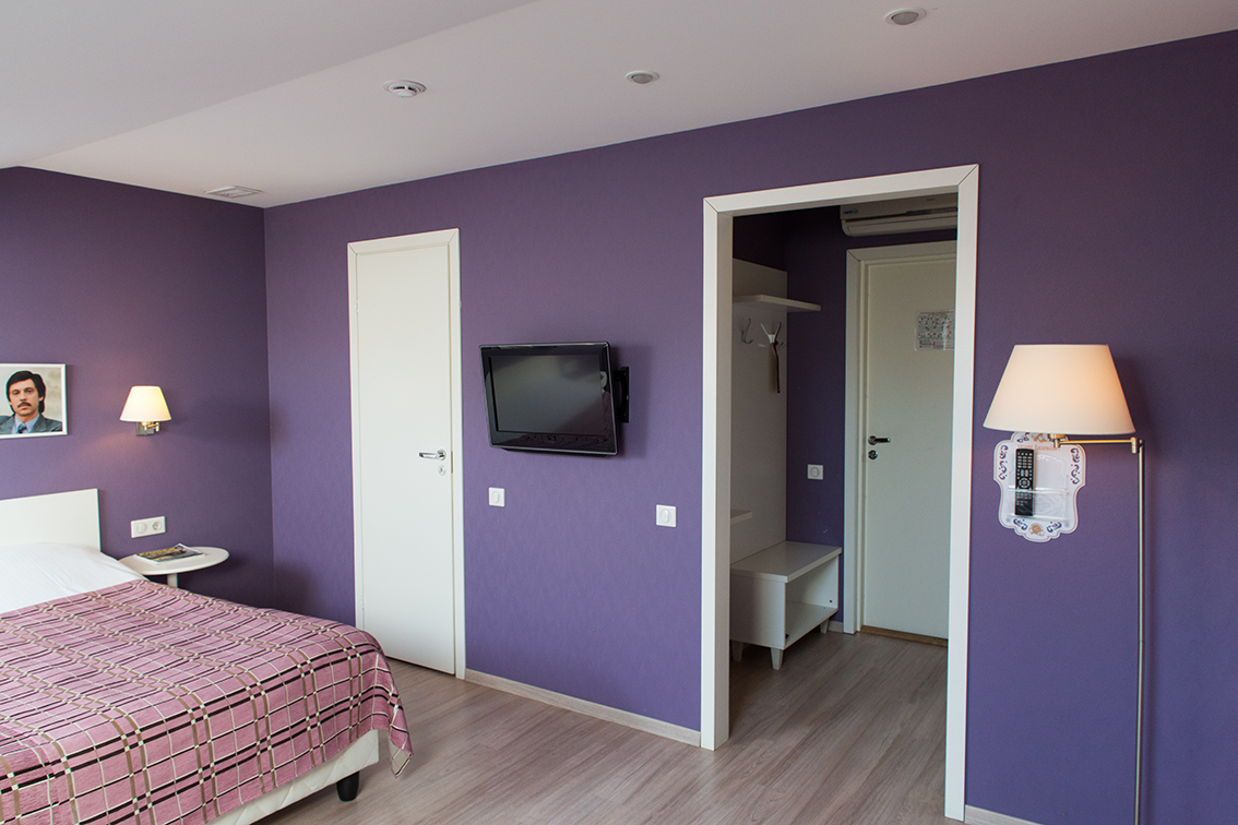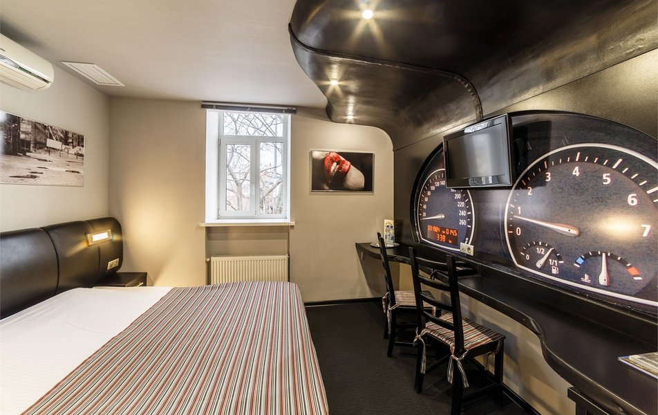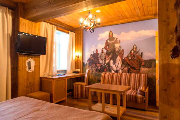 Оснащение номера: вешалка, зеркало, кровать двуспальная или две односпальные (сдвигаются), прикроватные тумбочки, стол, стулья, шкаф, кондиционер, мини-холодильник, телевизор, телефон, чайная станция