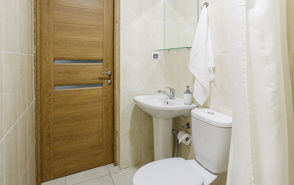 Сан.зел: душ, раковина, унитаз, туалетные принадлежности