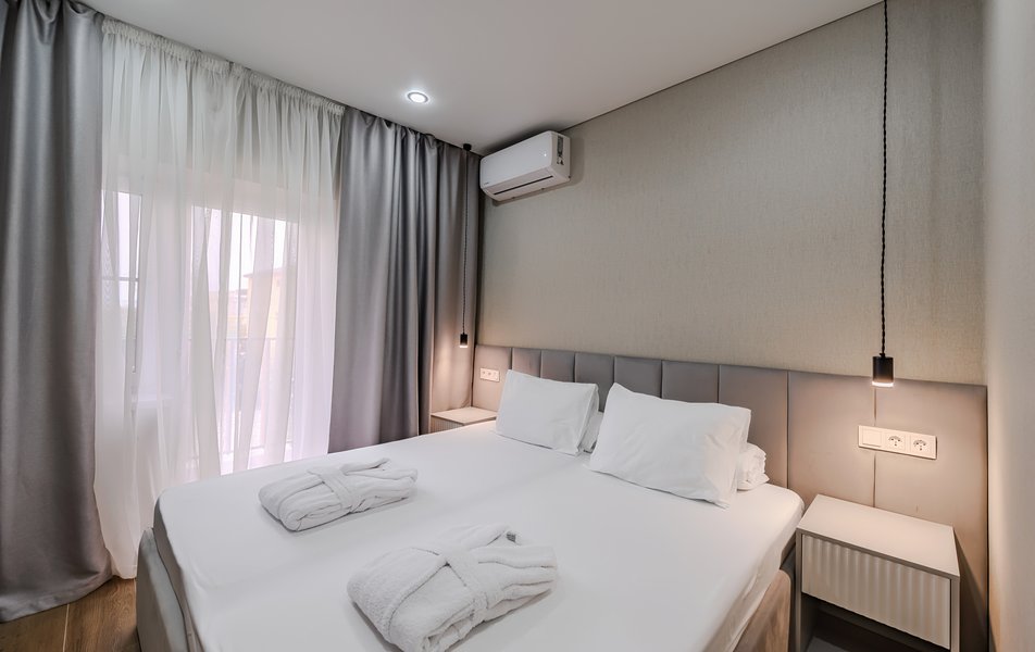 Оснащение номера: вешалка, зеркало, кровати полутороспальные, прикроватная тумбочка, шкаф, кондиционер, мини-холодильник, сейф, телевизор