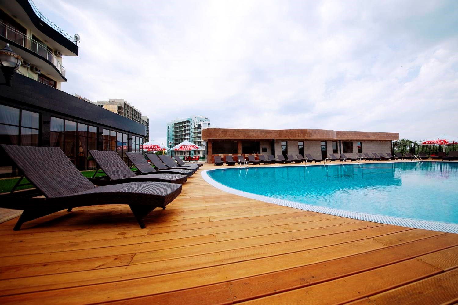 - Зона отдыха с шезлонгами