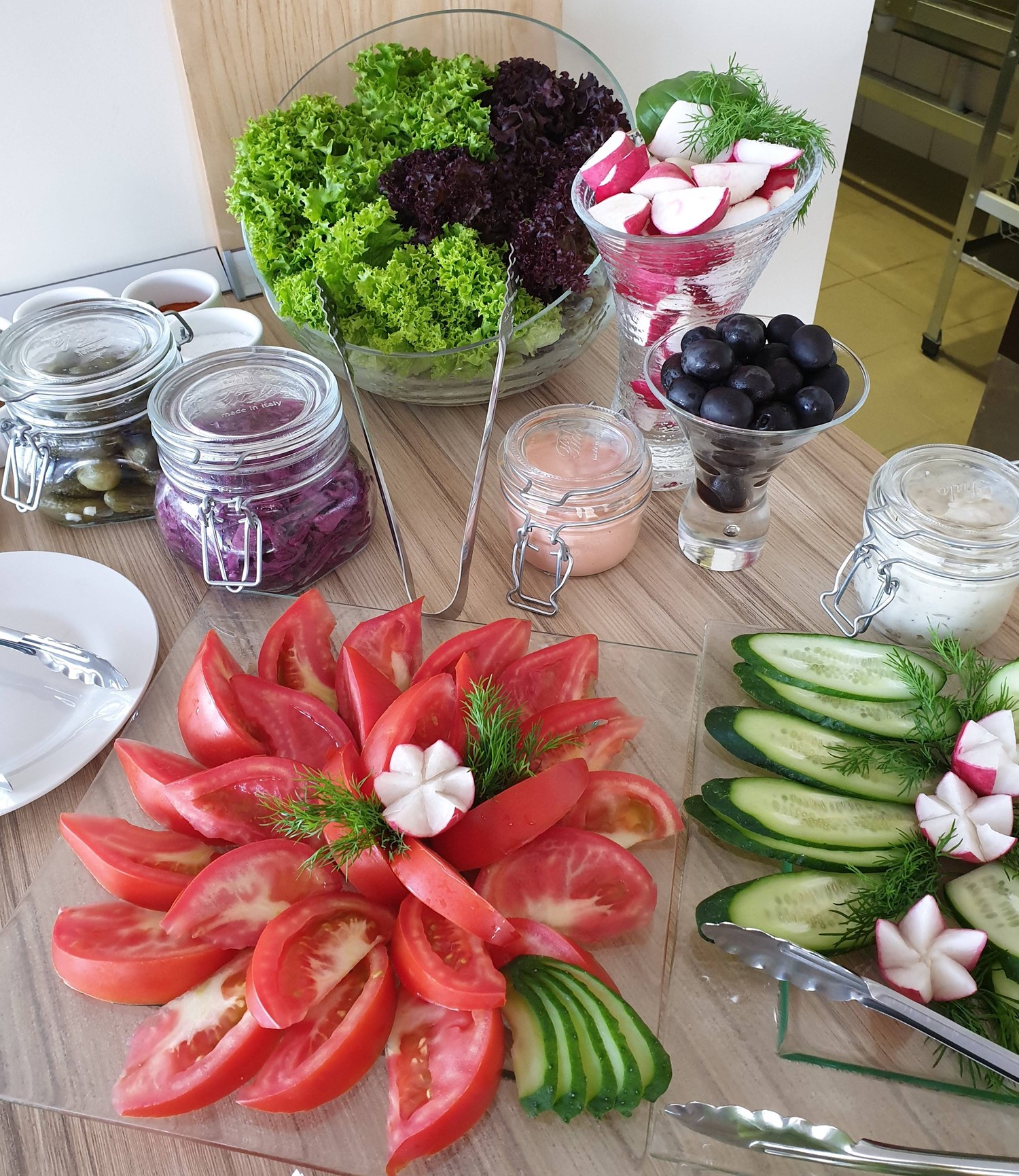 Заправки подаём отдельно — можно собрать блюдо под свой вкус.