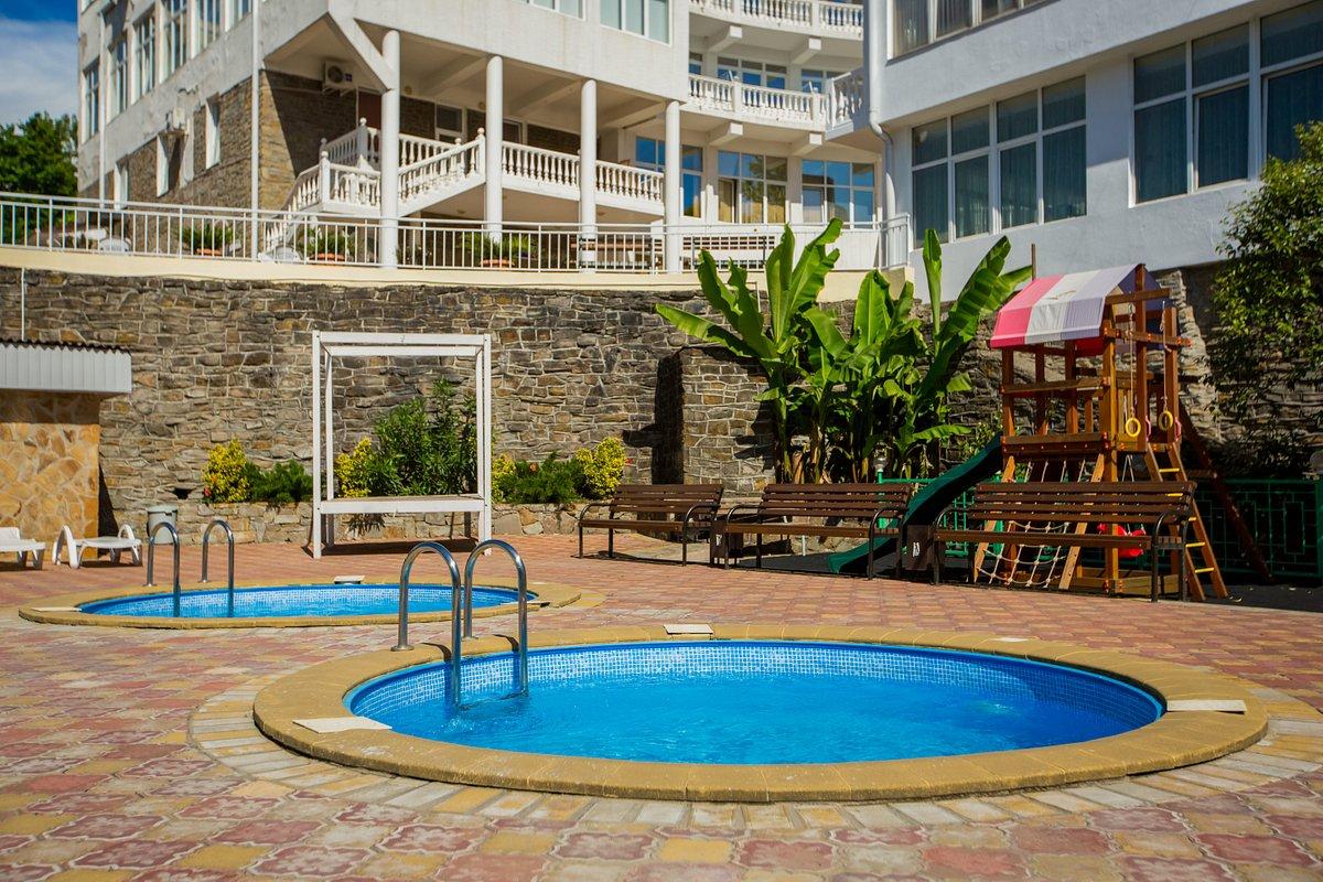 - с пресной водой, не подогреваемый, 3 маленьких круглых бассейна, диаметр 3 м, подогреваемый: 25 -26 С, размер 50 кв м., глубина 1,5 м, работает сезонно: с мая по октябрь