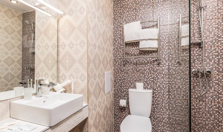 Сан/узел: душ, раковина, унитаз, туалетные принадлежности, фен