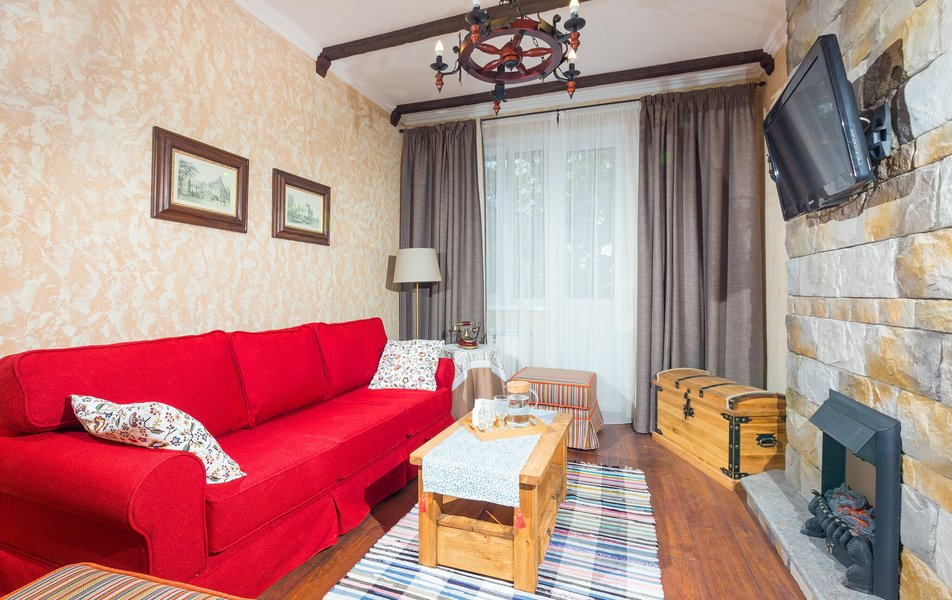 Оснащение номера: вешалка, диван раскладной, зеркало, кресло, кровать двуспальная, мягкий уголок, прикроватные тумбочки, стол, стул, шкаф, мини-холодильник, сейф, телевизор, чайный набор посуды, электрочайник