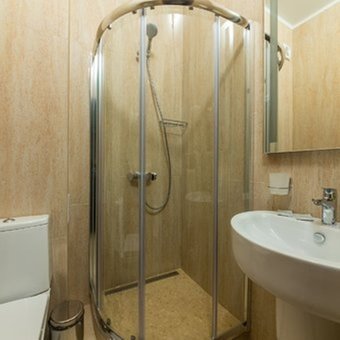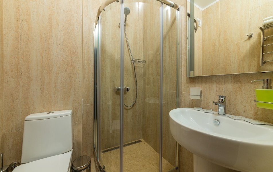 Сан.узел: душевая кабина, раковина, унитаз, туалетные принадлежности, фен