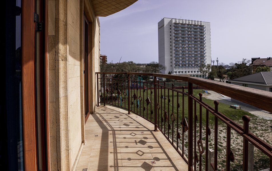 Оснащение номера: диван, кресла, кровать двуспальная, прикроватные тумбочки, стол, стул, шкаф, кондиционер, мини-холодильник, набор посуды, сейф, телевизор ЖК, телефон, электрочайник