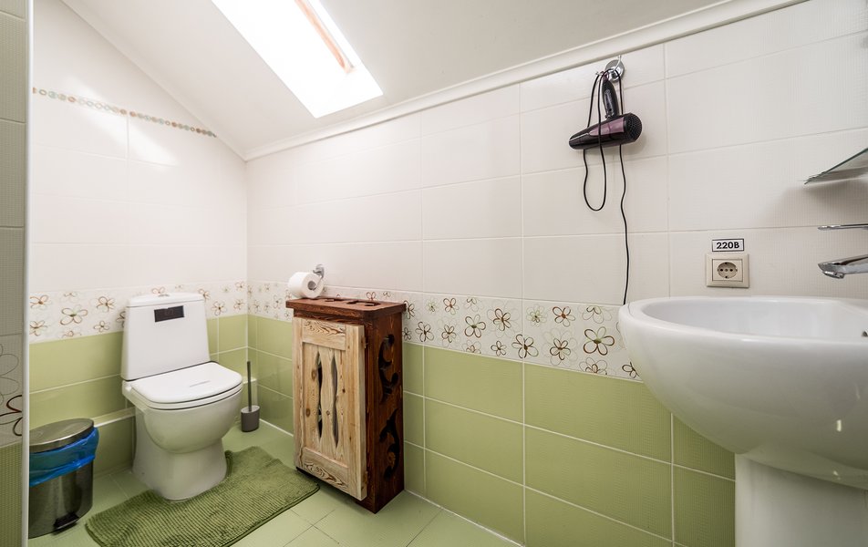Сан.узел: душ, раковина, унитаз, туалетные принадлежности, фен