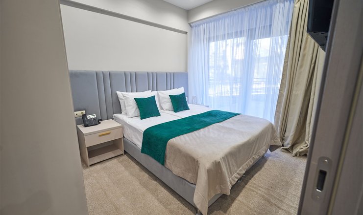 Оснащение номера: кровати односпальные /одна двуспальная кровать, стол, столик туалетный, стулья, шкаф, диван, гладильная доска, кондиционер, микроволновая печь, мини-холодильник, сейф, телевизор, утюг, чайная станция