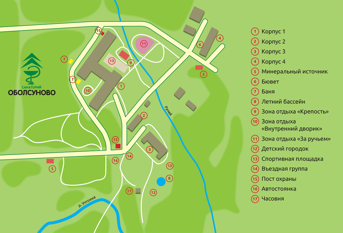 Схема территории санатория «ОБОЛСУНВО» в Ивановской области