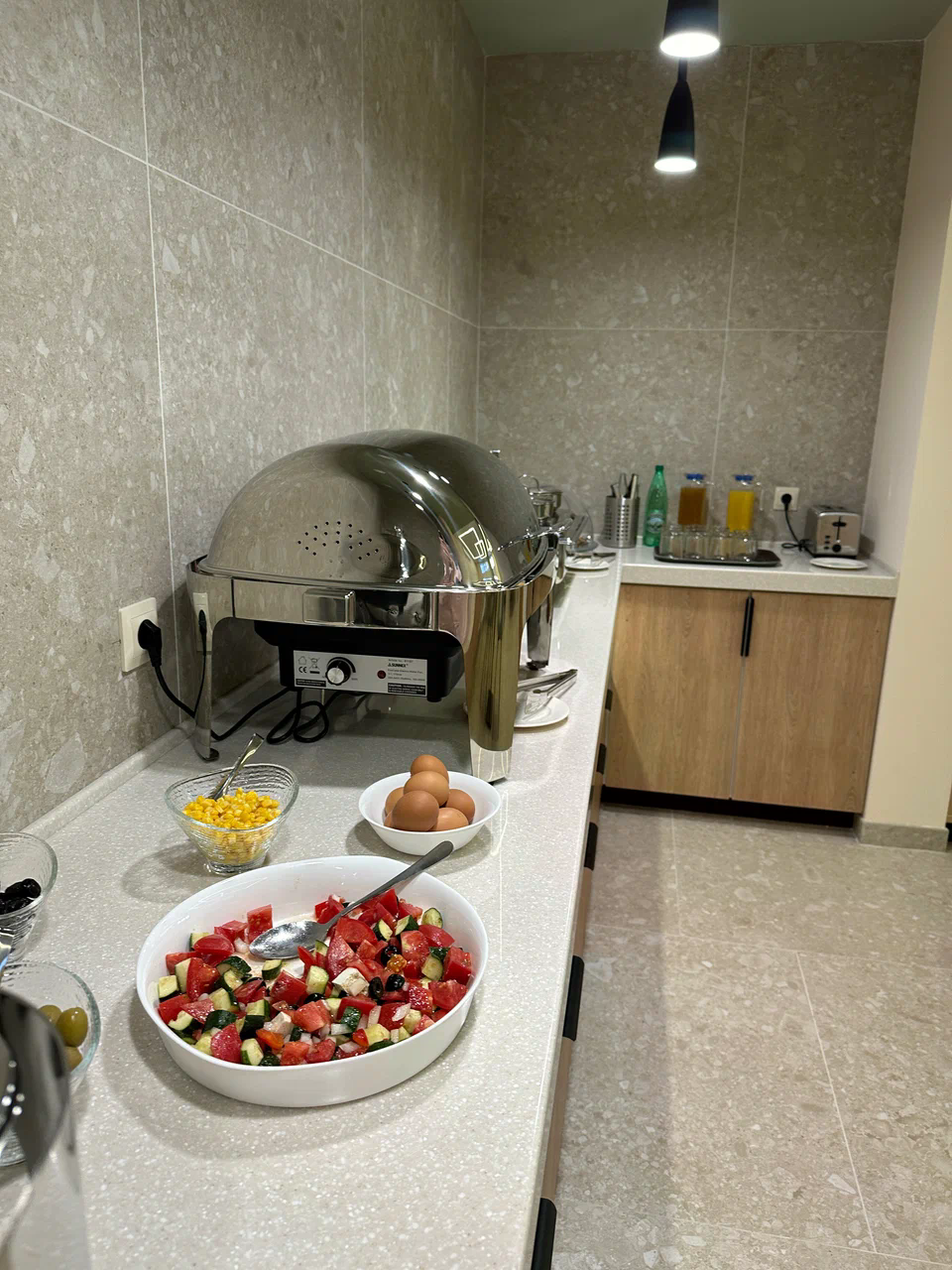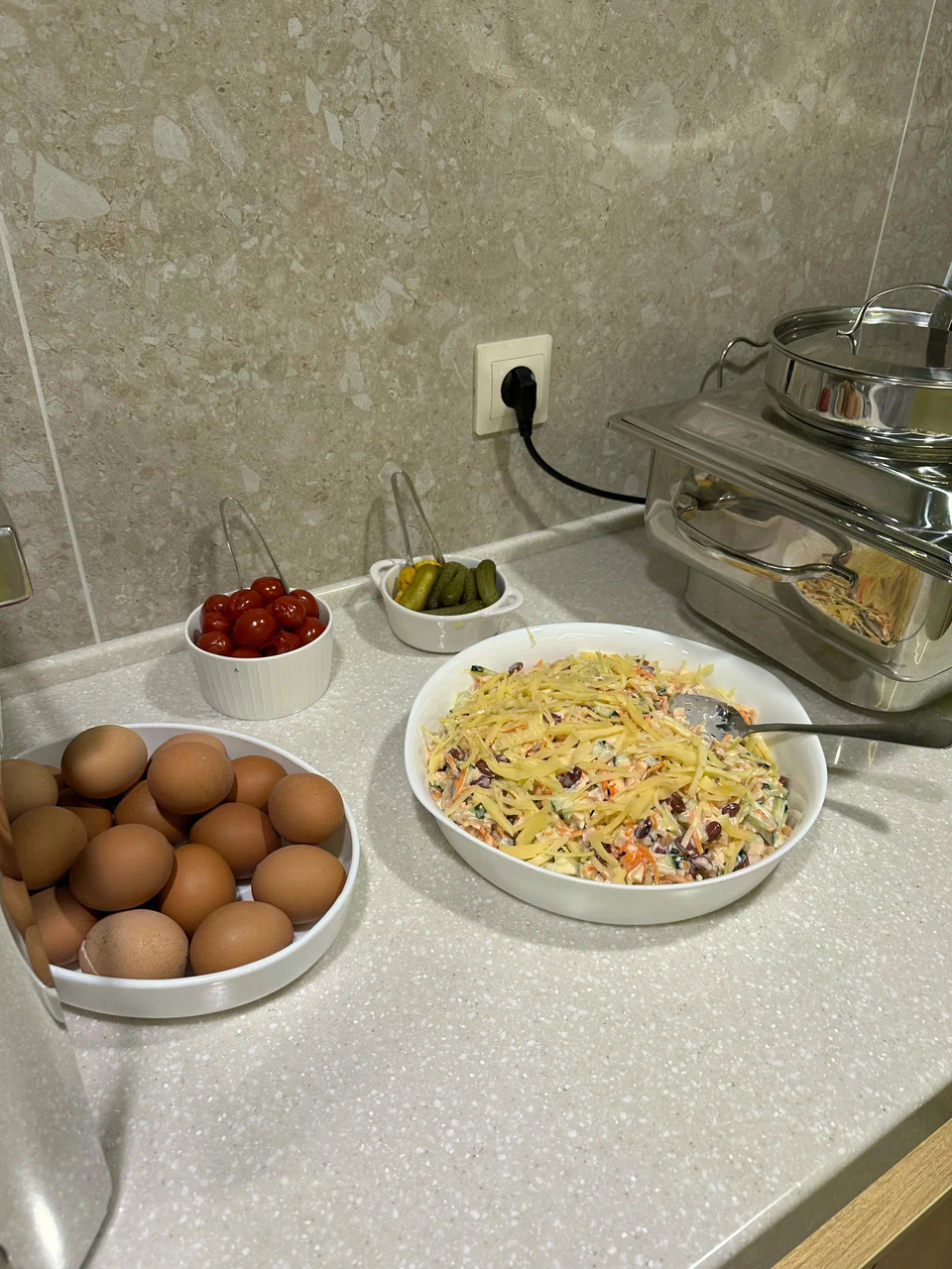 Наши повара готовят блюда европейской и местной кухни: каши, салаты, омлеты, гарниры, домашнюю выпечку. Используем только натуральные продукты — свежее мясо, рыбу, морепродукты, овощи и фрукты. В ассортименте — большой выбор напитков. Меню регулярно обновляется, чтобы гости могли каждый день наслаждаться разнообразной и вкусной едой.