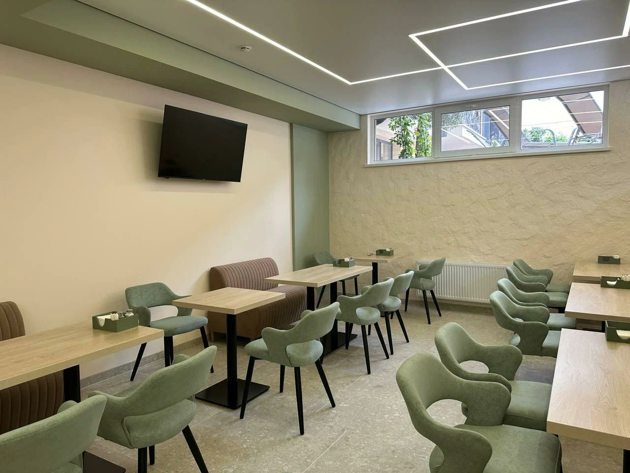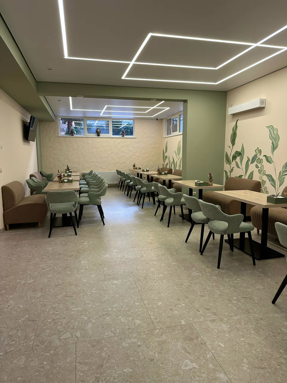 Стильная кофейня в авторском исполнении с современным дизайном и вкусной кухней. Работает как для гостей отеля, так и для жителей и гостей нашего города. Домашняя атмосфера, качественные ингредиенты и профессиональный персонал создают идеальные условия для отдыха, встреч и работы.
