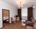 Оснащение номера: кровати односпальные /одна двуспальная кровать, прикроватные тумбочки, столик туалетный, стул, шкаф, диван, мини-холодильник, сейф, сплит-система, телевизор, телефон, чайный набор посуды, электрочайник, гладильная доска, утюг