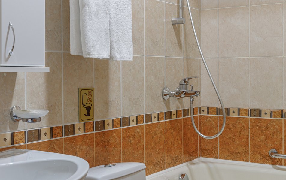 Сан/узел: душ или ванна, биде, раковина, унитаз, тапочки, туалетные принадлежности, фен