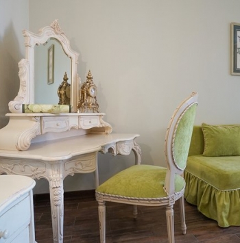 Оснащение номера: диван, зеркало, кровать двуспальная, столик журнальный, стулья, шкаф, сейф, сплит-система, телевизор ЖК