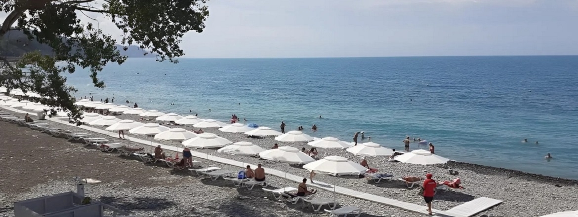 Собственная пляжная зона на Черном море — чистая, благоустроенная, с лежаками и зонтами. Зона купания огорожена буйками. Пляж не переполнен, что создаёт условия для спокойного и расслабленного отдыха.