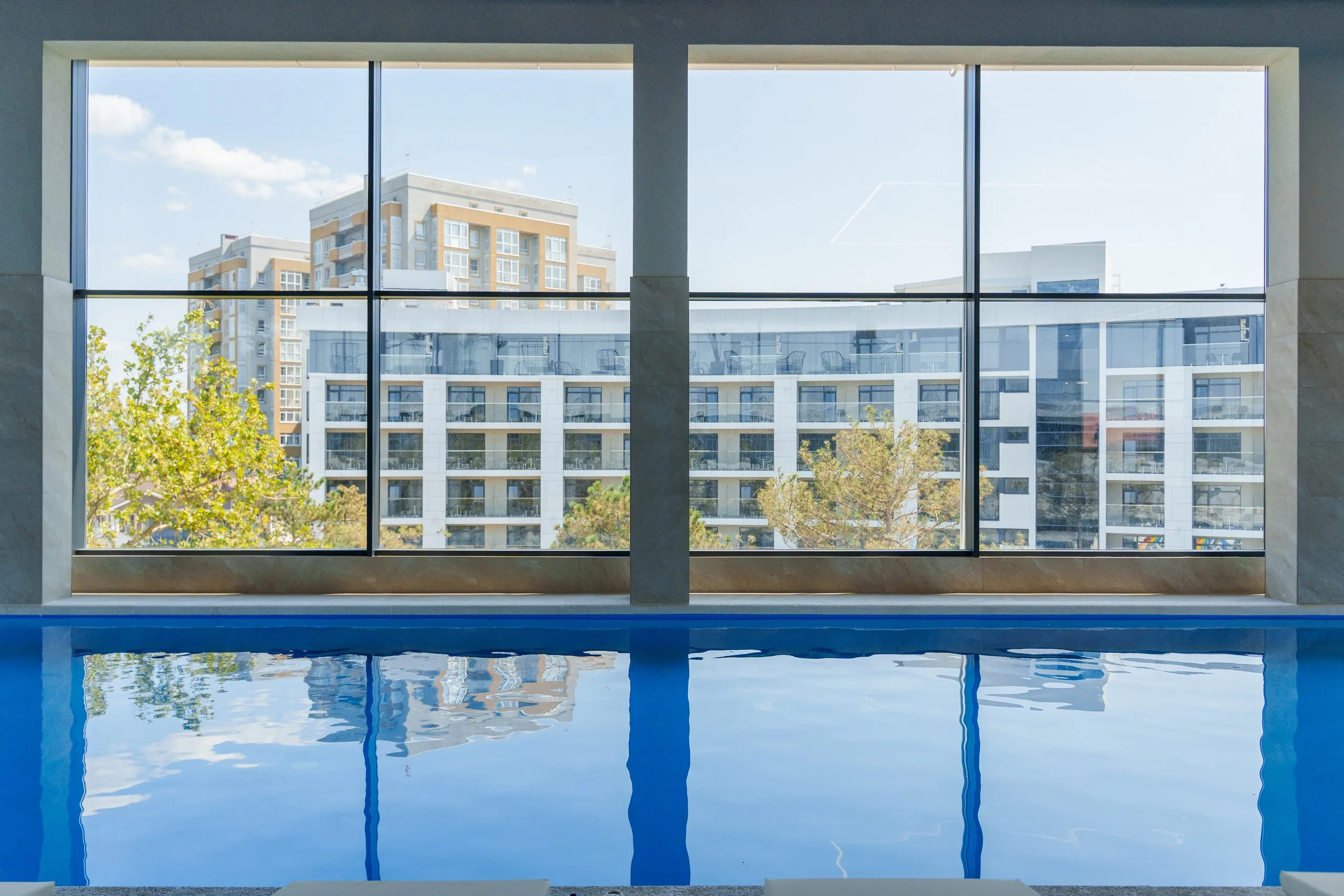 - Фитнес-центр с панорамными окнами и групповыми занятиями