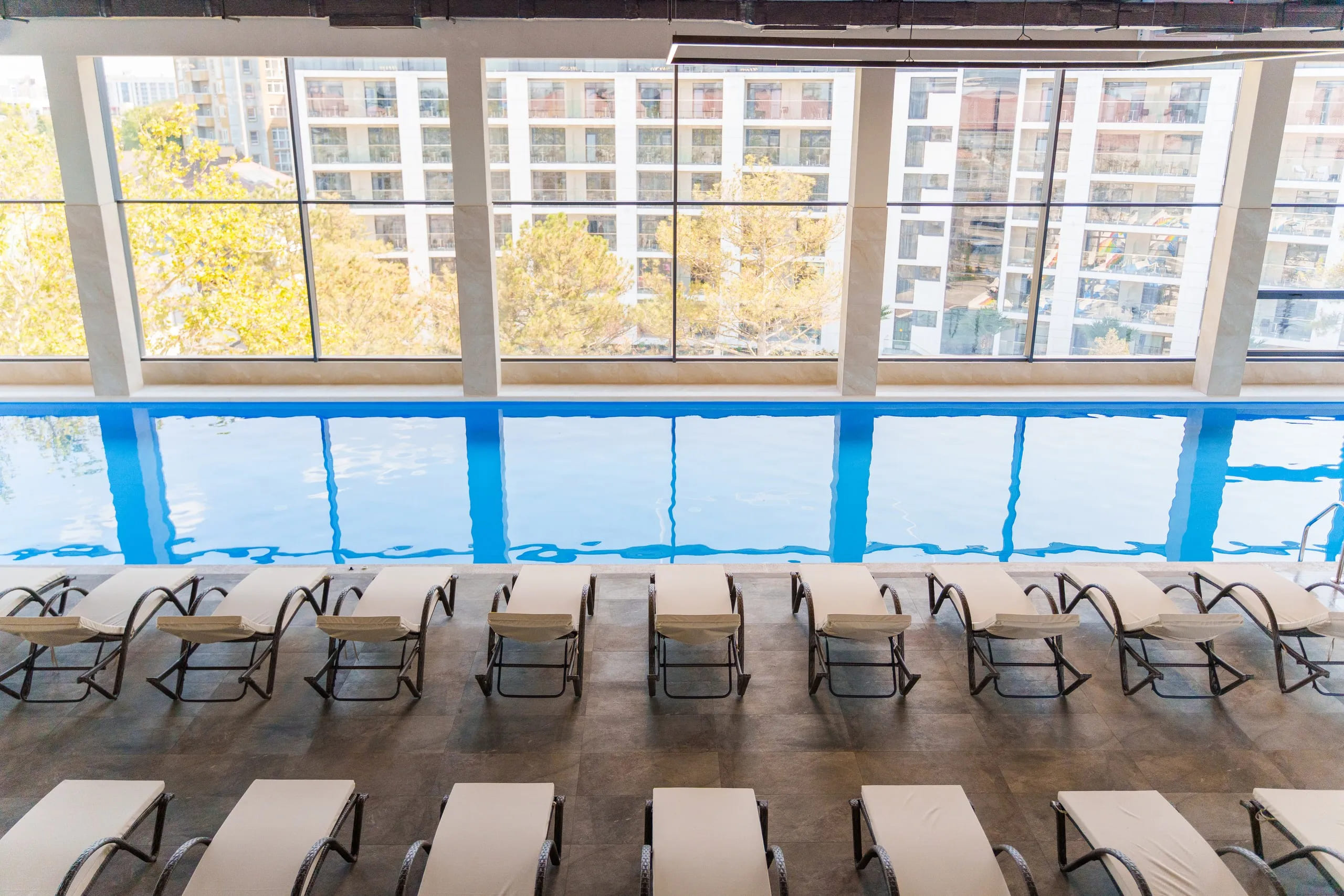Отель отличается продуманной архитектурой и интерьерами в стиле современной элегантности, где каждый элемент дизайна подчёркивает атмосферу уюта и расслабления. Просторные номера и люксы оформлены в единой концепции, с использованием качественных материалов, мягких пастельных тонов и функциональной мебели.